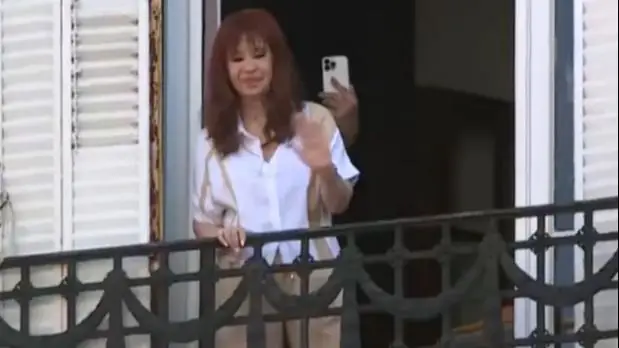 Una vez que las mujeres que marchaban fueron a su domicilio, la ex presidenta y ex vicepresidenta salió al balcón para saludarlas.